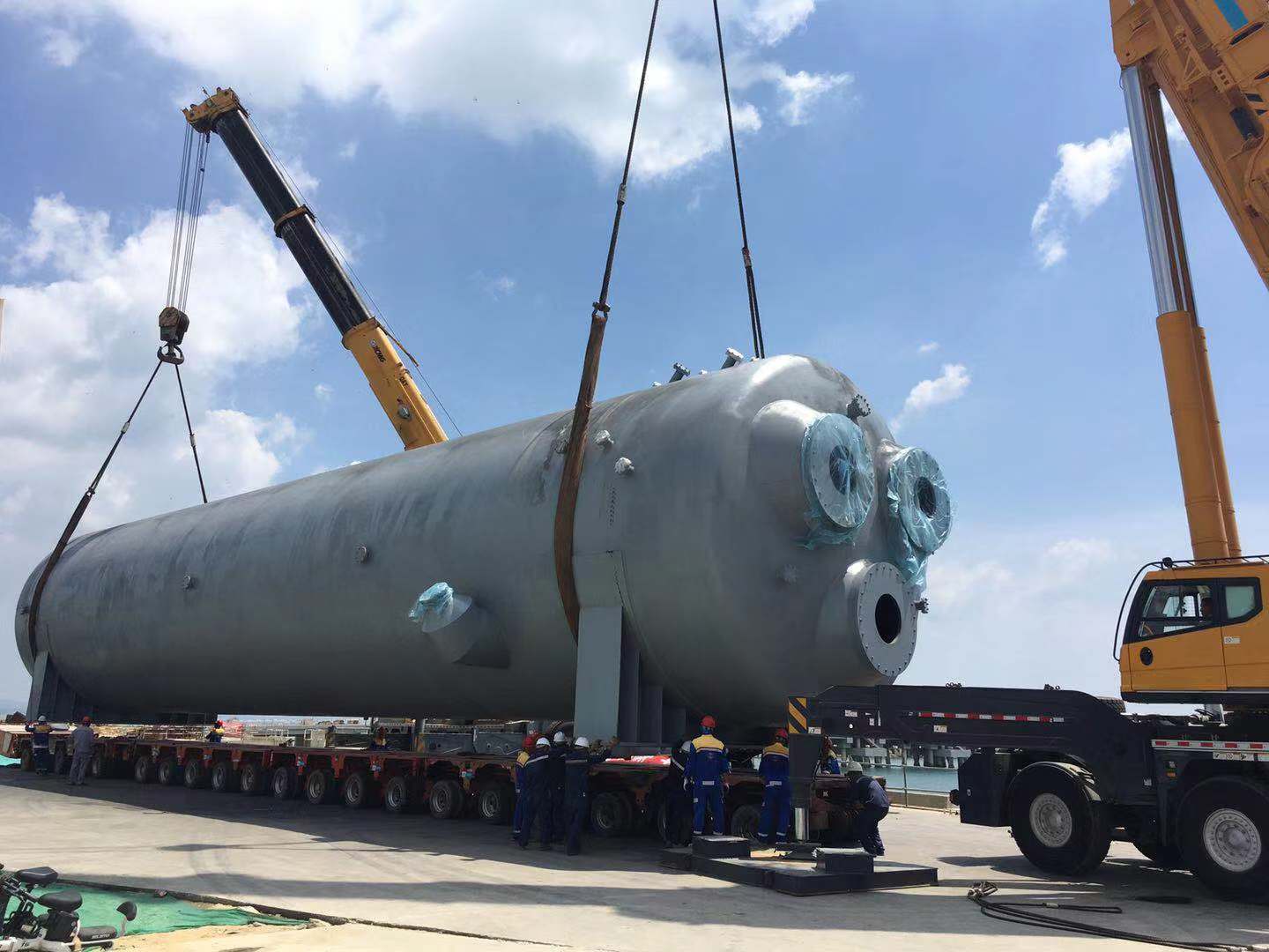 博納科技負責承建其中的15萬噸/年SAR裝置再生爐系統(tǒng),該爐型是博納科技自主研發(fā)的廢酸再生專用特種爐,直徑接近7米,長度30多米,凈重達140余噸,屬于超高超寬難運輸?shù)脑O備。
