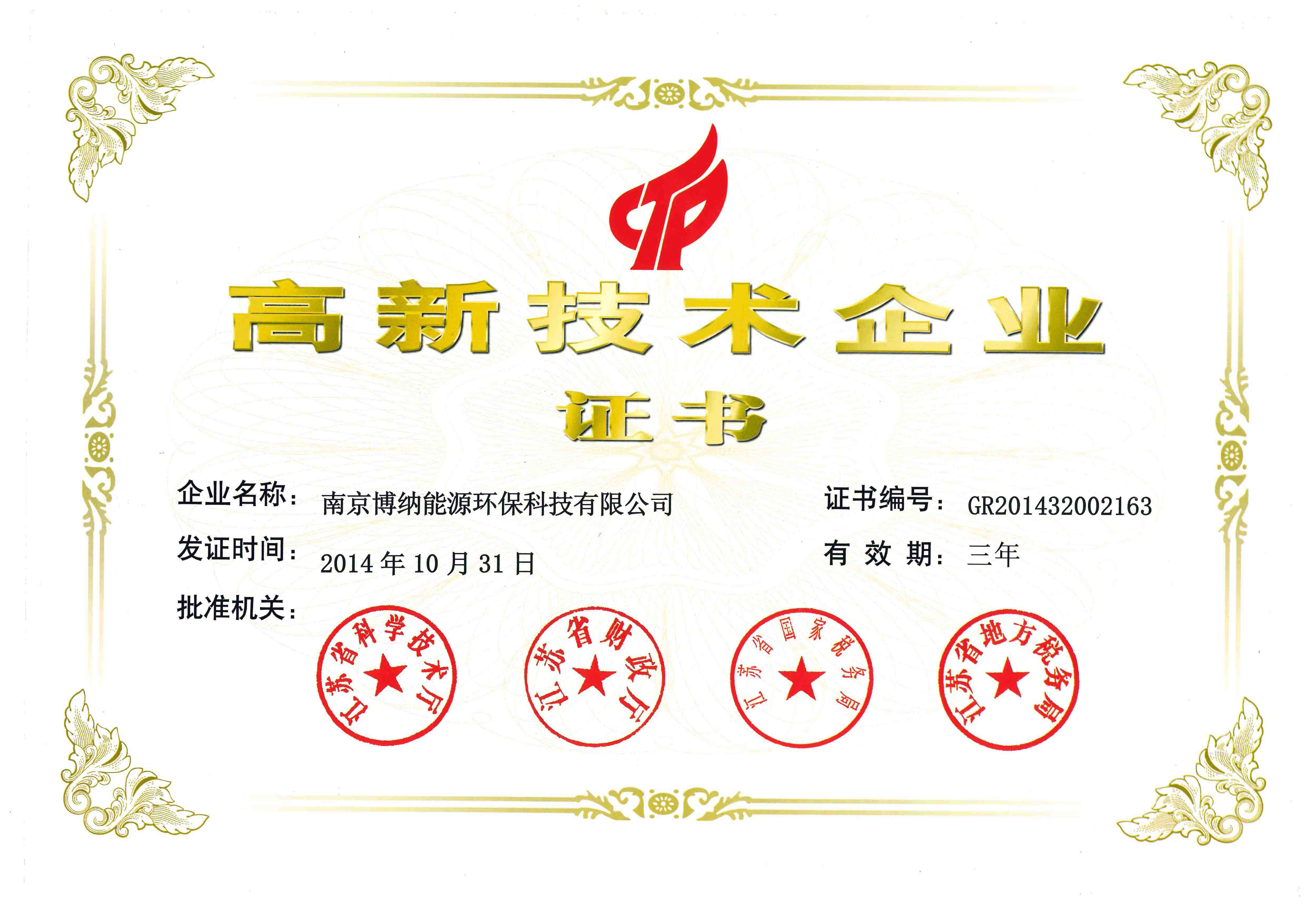 2014年10月31日,經(jīng)省科技廳等相關(guān)部門(mén)組織專(zhuān)家評(píng)審、公示后,博納成功獲得國(guó)家高新技術(shù)企業(yè)認(rèn)定,本次高新技術(shù)企業(yè)認(rèn)證的通過(guò)充分顯示了公司的整體實(shí)力,同時(shí)也是各部門(mén)人員相互配合,辛勤付出所取得的結(jié)果。